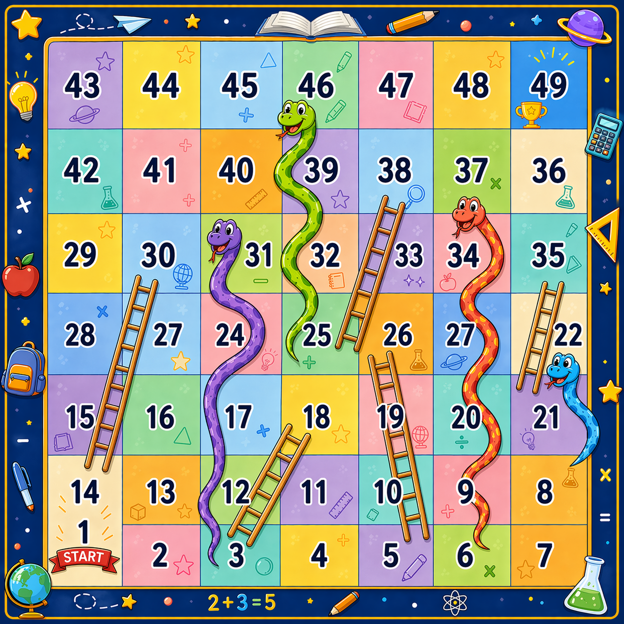 harus turun ke petak yang ditunjuk oleh ekor ular.